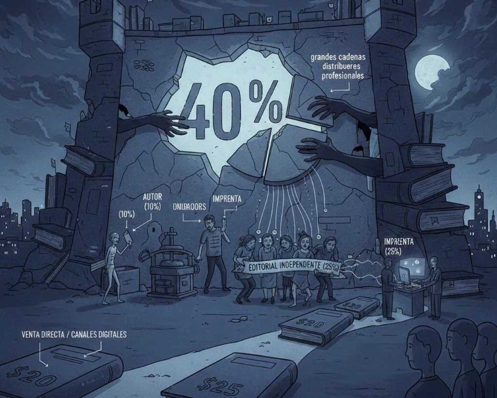 En el corazón de la economía editorial ecuatoriana existe una cifra que determina la vida o muerte de un proyecto: el 40%. Este es el porcentaje estándar que las grandes cadenas de librerías y distribuidores profesionales exigen sobre el Precio de Venta al Público (PVP). Este «descuento de librería» representa el mayor cuello de botella para la bibliodiversidad en el país. Aunque el lector asume que el grueso del dinero va para quien escribió la historia o para la editorial que la descubrió, la realidad es que el intermediario final es quien retiene la porción más grande del pastel económico.